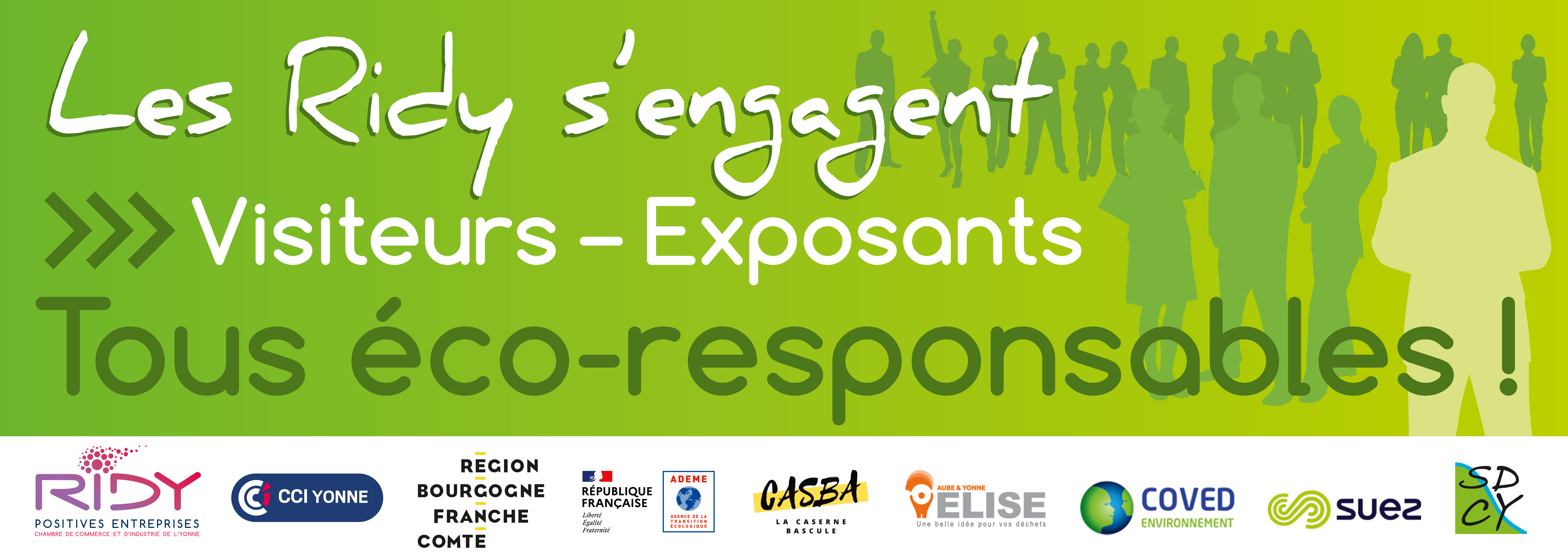 une action avait déjà été lancée lors des RIDY 2019Les évènements et salons professionnels génèrent des consommations et des déchets. La CCI de l'Yonne souhaite limiter l’impact des RIDY, et mettre en avant cette démarche éco-responsable : Au lieu de masquer la collecte des déchets comme c’est le cas classiquement sur les salons professionnels, le choix est de rendre visibles ces points de collecte, et de les mettre en valeur pour faciliter le tri. Une équipe dédiée sera présente pour accompagner exposants et visiteurs dans la démarche : « Les RIDY s’engagent : Visiteurs, exposants, tous éco-responsables ! ». Télécharger la charte
